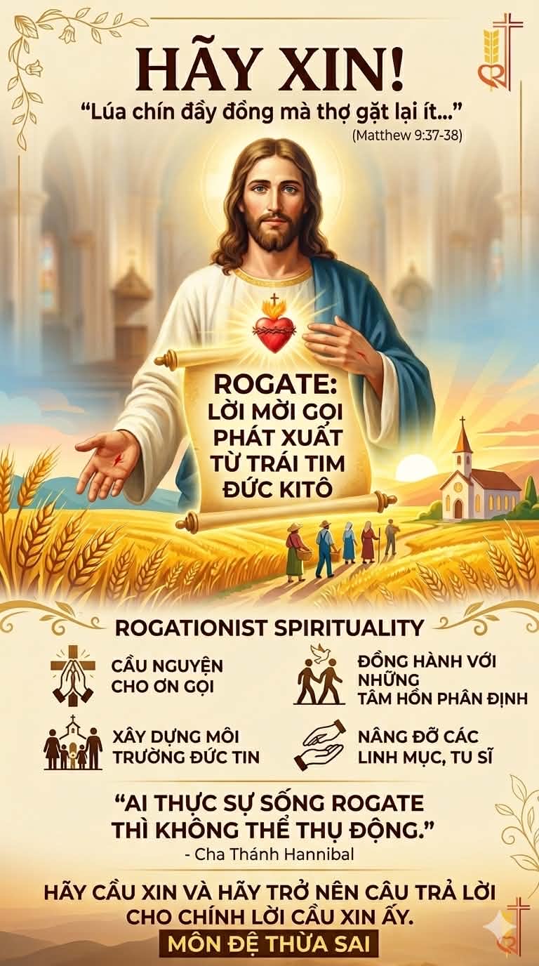 Chầu Thánh Thể Cầu Nguyện Cho Ơn Gọi Tu sĩ Chầu Thánh Thể Cầu Nguyện Cho Ơn Gọi Thánh Hiến ROGATE - Một lời mời gọi cộng tác Lời Khấn Thứ Tư - Lời Khấn ROGATE Chầu Thánh Thể Cầu Nguyện Cho Ơn Gọi Thánh Hiến Chúa Giêsu chạnh lòng thương - nền tảng của linh đạo Rogate và sứ mạng Hội Thánh Hành trình khám phá và lãnh nhận lời cầu nguyện "Rogate" của cha Hannibal tin / bài mới Chầu Thánh Thể Cầu Nguyện Cho Ơn Gọi Tu sĩ Chầu Thánh Thể Cầu Nguyện Cho Ơn Gọi Thánh Hiến ROGATE - Một lời mời gọi cộng tác Lời Khấn Thứ Tư - Lời Khấn ROGATE Chầu Thánh Thể Cầu Nguyện Cho Ơn Gọi Thánh Hiến Chúa Giêsu chạnh lòng thương - nền tảng của linh đạo Rogate và sứ mạng Hội Thánh Hành trình khám phá và lãnh nhận lời cầu nguyện "Rogate" của cha Hannibal Đức Kitô Rogate trong Tin mừng Các bài suy niệm Đàng Thánh Giá tại Colosseo (Thứ Sáu Tuần Thánh 3/4/2026) Dám chọn – Dám sống ơn gọi của mình Được gọi bởi tình yêu, được dẫn dắt trong tự do Thánh lễ Tiệc Ly (2/4): Đức Giêsu yêu thương cách dứt khoát Lễ Dầu (02/4/2026) - Căn Tân Sứ Mạng Kitô Giáo Sứ điệp Bộ Giáo Sĩ gởi các Linh mục, Phó tế và Chủng sinh nhân ngày Thứ Năm Tuần Thánh 2026 Sứ điệp của Đức Thánh Cha Lêô XIV nhân Ngày Thế giới Cầu nguyện cho Ơn gọi Đức Kitô Rogate trong Tin mừng Tin tức Tin Giáo Hội Hoàn vũ Tin Giáo Hội Việt Nam Tin Hội Dòng Tin Sứ vụ Các bài suy niệm Đàng Thánh Giá tại Colosseo (Thứ Sáu Tuần Thánh 3/4/2026) Thánh lễ Tiệc Ly (2/4): Đức Giêsu yêu thương cách dứt khoát Lễ Dầu (02/4/2026) - Căn Tân Sứ Mạng Kitô Giáo Sứ điệp Bộ Giáo Sĩ gởi các Linh mục, Phó tế và Chủng sinh nhân ngày Thứ Năm Tuần Thánh 2026 Sứ điệp của Đức Thánh Cha Lêô XIV nhân Ngày Thế giới Cầu nguyện cho Ơn gọi Đức Thánh Cha Lêô XIV: Đức Hồng Y Phanxicô Xaviê Nguyễn Văn Thuận Là Chứng Nhân Hy Vọng Rất Thời Sự Đức Giáo hoàng Lêô XIV giải thích vì sao chức linh mục được dành cho nam giới Hội Dòng Lịch sử Hội dòng Đấng Sáng lập Đặc sủng và Linh đạo Tư liệu Hội Dòng Thánh Hannibal Maria Di Francia, Vị Thánh của Ơn Gọi Cuộc săn người nghèo Đặc sủng Linh đạo của Thánh Hannibal Maria Di Francia Thánh Hannibal Maria Di Francia, Vị Tông Đồ Của Việc Cầu Nguyện Cho Ơn Gọi Hannibal, vị thánh không bao giờ nói Không! KỶ NIỆM 18 NĂM NGÀY GIÁO HỘI TUYÊN PHONG HIỂN THÁNH CHA HANNIBAL MARY DI FRANCIA THÁNH HANNIBAL ĐỐI VỚI TÔI LÀ AI? Sứ vụ Việt Nam Huấn luyện Nội bộ Sứ vụ Việt Nam ROGATE- Yêu thương được trao đi – Hy vọng được nhen lên Thư Chúc Mừng Của Cha Bề Trên Cộng Đoàn Triết Học Tại Cebu Bánh mì Thánh Antôn - Lời Tri Ân Cuối Năm Của Cộng Đoàn Micae Sài Gòn Thánh Lễ Tất Niên Cuối Năm Cùng Với Quý Ân Nhân Của Dòng Tông Đồ Cầu Nguyện Cho Ơn Gọi Hội Chợ Chia Sẻ Giáng Sinh Yêu Thương Tất cả là Hồng Ân! Lời tri ân chân thành của Anh Em Tông Đồ Ơn Gọi Việt Nam Trọng Thể Mừng Lễ Chúa Giáng Sinh, Nghi thức lãnh nhận tác vụ Giúp lễ và gia nhập vào gia đoạn chủng sinh Mục vụ Giới trẻ Dân tộc thiểu số Nhà tình thương Giáo xứ Gia Đình Thiếu Nhi Dám chọn – Dám sống ơn gọi của mình Got Talent hay God Talent? Tài năng để biểu diễn hay Món quà để sống? Thánh Hannibal - Vị Tông Đồ của Gia Đình Kitô Giáo Diễn từ của Đức Thánh Cha Lêô XIV gửi quý giáo sư và sinh viên Học viện Giáo hoàng Gioan Phaolô II về khoa hôn nhân và gia đình Tại sao chúng ta không nên sợ ma quỷ — theo Thánh Giáo hoàng Gioan Phaolô II Đức Giáo hoàng Leo khích lệ các đôi hôn nhân noi gương Thánh Louis và Zélie Martin Trái Tim Ẩn Giấu Ơn gọi Điều kiện gia nhập Cổ vũ ơn gọi Lời Cầu Cho Ơn Gọi Chầu Thánh Thể Chầu Thánh Thể Cầu Nguyện Cho Ơn Gọi Tu sĩ Chầu Thánh Thể Cầu Nguyện Cho Ơn Gọi Thánh Hiến Được gọi bởi tình yêu, được dẫn dắt trong tự do Quyết định ơn gọi: Những chặng đường của một hành trình Đời sống Thánh hiến, cho một hiện tại có tương lai Tuyển sinh ơn gọi 2026 Tại sao chúng ta phải cầu nguyện cho ơn gọi? Suy niệm Chúa Nhật Rogate Mùa Vọng - Giáng Sinh Mùa Chay - Phục Sinh Mùa Thường Niên ROGATE - Một lời mời gọi cộng tác Lời Khấn Thứ Tư - Lời Khấn ROGATE Chầu Thánh Thể Cầu Nguyện Cho Ơn Gọi Thánh Hiến Chúa Giêsu chạnh lòng thương - nền tảng của linh đạo Rogate và sứ mạng Hội Thánh Hành trình khám phá và lãnh nhận lời cầu nguyện "Rogate" của cha Hannibal Đức Kitô Rogate trong Tin mừng Thánh Tâm Chúa Giêsu: Con đường của Tình yêu và Lòng thương xót Mẹ Maria NỮ VƯƠNG ƠN GỌI Hành hương Vai Trò của Đức Maria trong Đời Linh Mục của Tôi Sự vâng phục khiêm hạ của Mẹ Maria và lễ thanh tẩy không cần thiết Xin Mẹ Maria ban cho chúng con sức mạnh để yêu thương Chúng con xin thánh hiến mình cho Trái Tim Vô Nhiễm Nguyên Tội Đức Maria Thánh Hannibal Maria Di Francia và lòng sùng kính Đức Mẹ Tham dự vào cuộc thăm viếng của Đức Maria qua việc viếng thăm người khác Khám phá lịch sử huyền nhiệm của Chuỗi Mân Côi Sống đẹp Đời sống thánh hiến h