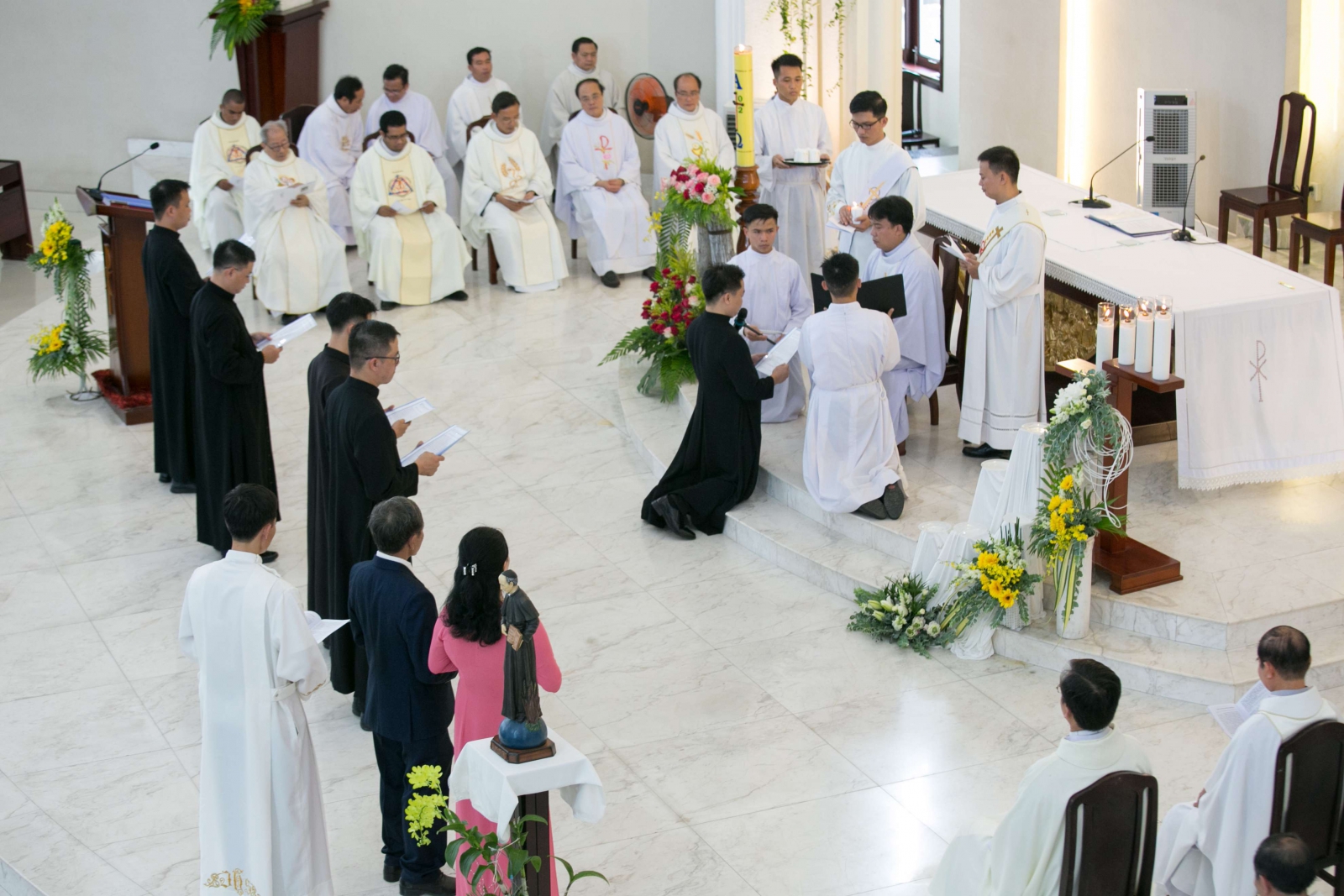 Tin Hội Dòng Lễ Tuyên Khấn Trọn Đời và Lập Lại Lời Khấn Tại nhà nguyện của Dòng Mân Côi Chí Hoà, vào lúc 15 giờ 00 chiều, Hội Dòng tổ chức Thánh lễ Tuyên khấn Trọn Đời và Lập Lại Lời Khấn Của Các Tu Sĩ Dòng Tông Đồ Cầu Nguyện Cho Ơn Gọi nhân ngày Hội Dòng Mừng Sinh Nhật Lần Thứ 171 Của Cha Thánh Hannibal, Ngày 05/07/2022. Thánhh lễ được cha Giuse Phan Hoàng Nguyễn chủ sự một cách long trọng và sốt sắng. Các ứng sinh khấn lại bao gồm 6 thầy: Thầy Luis Đổ Đức Hạnh, RCJ Thầy Phêrô Ngô Văn Lực, RCJ Thầy Giuse Chu Ngọc Kiên, RCJ Thầy Phêrô Nguyễn Hồ Thịnh, RCJ Thầy Giacôbê Đinh Việt Tùng, RCJ Thầy Gioan Baotixita Hoàng Tâm, RCJ Các ứng sinh tuyên khấn trọn đời gồm 5 thầy: Thầy Phêrô Nguyễn Duy Nhân, RCJ Thầy Phêrô Đỗ Xuân Trường, RCJ Thầy Giuse Nguyễn Hữu Bình, RCJ Thầy Augustino Hoàng Trần Minh Châu, RCJ Thầy Phanxicô Xaviê Nguyễn Phúc Thiện, RCJ Sau khi thầy phó tế công bố lời Chúa là phần gọi tên các ứng sinh khấn trọn trình diện trước cộng đoàn dân Chúa, tiếp đó là bài giảng của cha chủ tế. Bài chia sẻ được mở đầu một cách sống sống qua câu chuyện hài hước của một Đan Sỹ Thiên An với nội dung, cứ đi tu là trở nên đẹp trai, xinh gái. Tiếp đó là 3 chủ điểm chính của bài giảng: 1. Tiếng Gọi Tình Yêu của Thiên Chúa là một tiếng gọi đẹp dành cho con người từ muôn thuở. 2. Thiên Chúa sẽ chăm lo và yêu thương từng ơn gọi và làm cho ơn gọi của người tu sĩ trở nên kỳ diệu và đẹp hơn. 3. Lòng đáp trả của người tu sĩ đối với tiếng gọi yêu thương của Thiên Chúa làm cho họ trở nên thánh thiện, đẹp trong Chúa Giê-su….chính điều ấy thúc bách người tu sĩ dấn thân và loan báo Tin Mừng Nước Trời. Nghi thức khấn lại và khấn trọn được cha King Cena. RCJ thay mặt cha bề trên giám tỉnh, cử hành và đại diện nhận lời khấn của các ứng sinh. Thánh lễ thêm phần long trọng với sự hiện diện của 25 cha đồng tế và 2 thầy phó tế, cùng ông bà cố, quý ân thân nhân của các thầy tuyên khấn ngày hôm nay. Thánh lễ kết thúc vào lúc 18h00’ chiều. VÀI HÌNH ẢNH TRONG LỄ KHẤN Ngày 9 tháng 7 Năm 2022 Bài liên quan Khấn Trọn Đời – Lặp Lại Lời Khấn – Một Hành Trình Tin Yêu Hồng Ân Khấn Dòng – Trái Ngọt Tình Yêu Dâng Hiến Mừng lễ Thánh Hannibal Maria Di Francia Roma: Chương Trình Đào Tạo Các Nhà Đào Tạo Rogazionist Đức Trinh Nữ Maria, Nữ Vương Và Hiền Mẫu Của Rogate Tất Cả Chúng Ta Đều Là Con Nợ Bánh Mì Thánh Antôn - lan tỏa yêu thương đến mọi người Giám mục người Philippines đầu tiên của Tổng Giáo Phận Australia